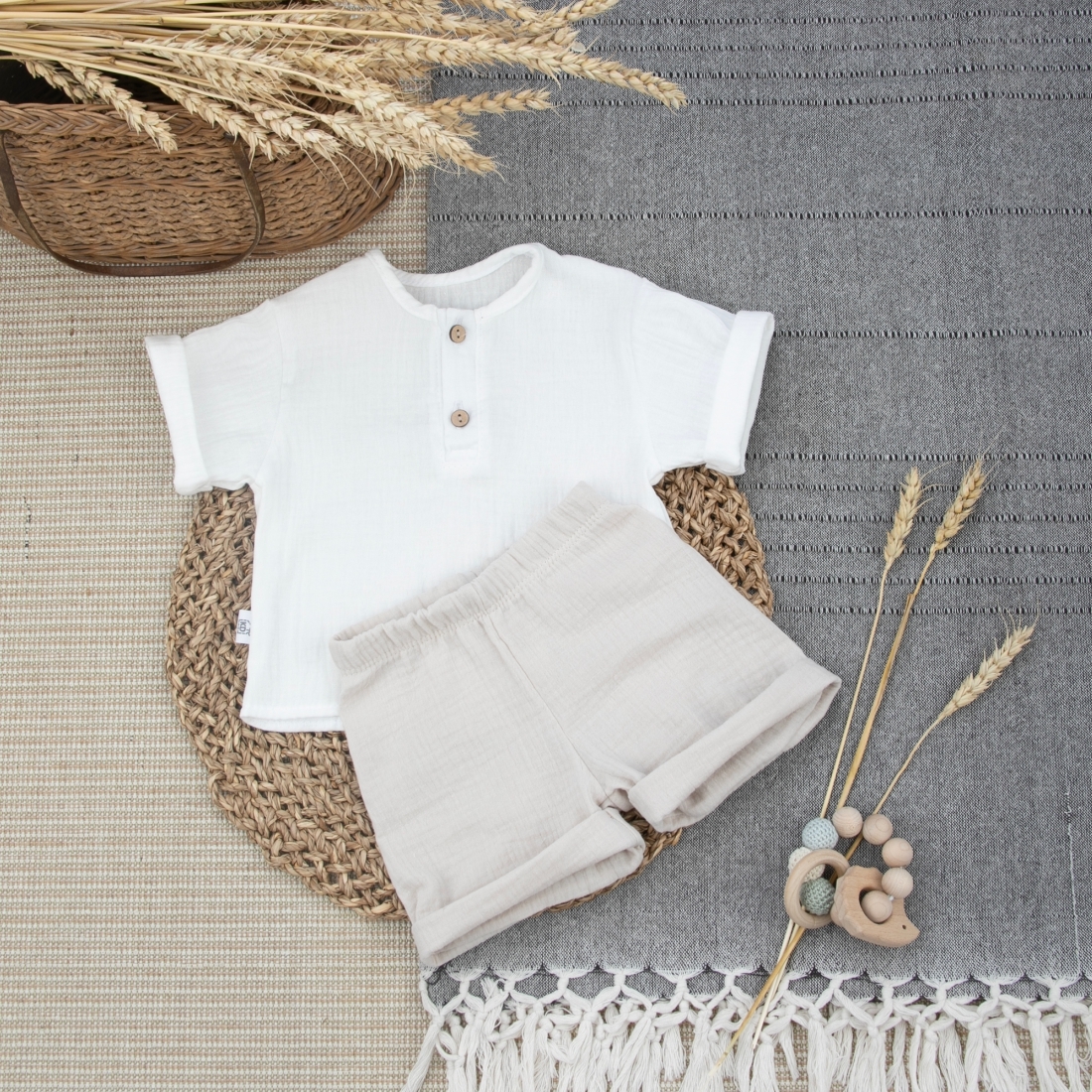 Пижама летняя для мальчика "Муслин", светло-бежевый, лето
