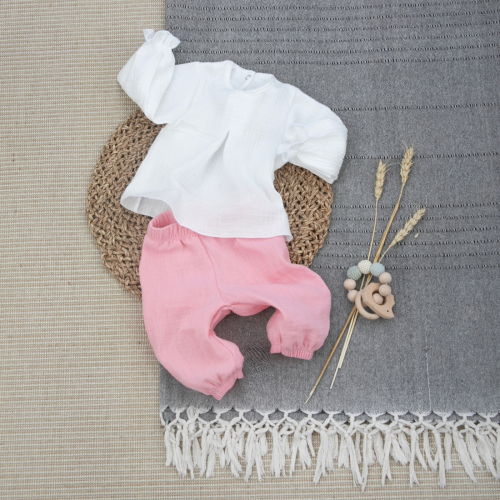 Муслиновая пижама с длинным рукавом для девочки "Муслин", розовый, лето