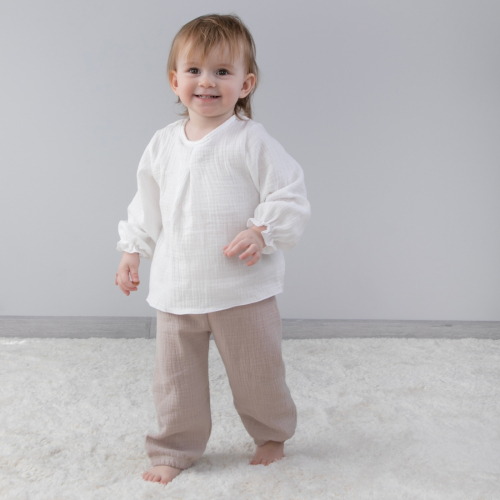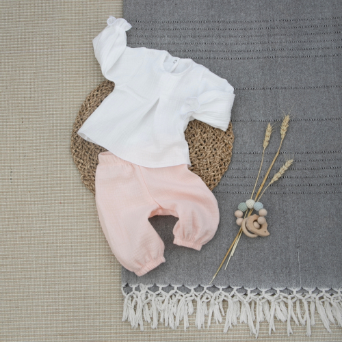 Муслиновая пижама с длинным рукавом для девочки "Муслин", пудра, лето
