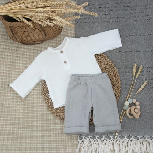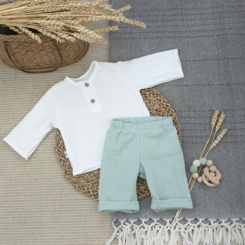 Муслиновая пижама с длинным рукавом для мальчика "Муслин", полынь, лето