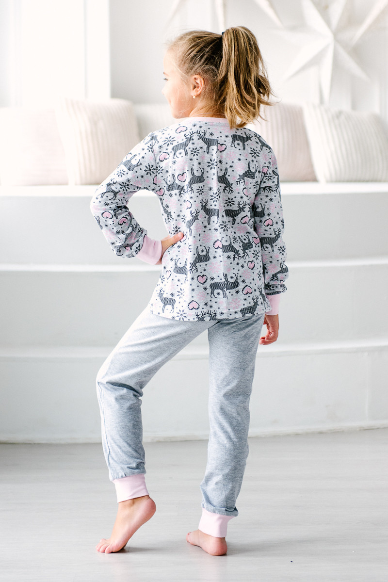 Пижама детская из джемпера и брюк из кулирки Олененок розовый