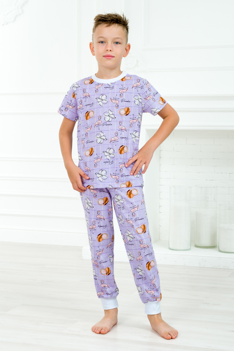 Пижама детская из футболки и брюк из кулирки Фламинго