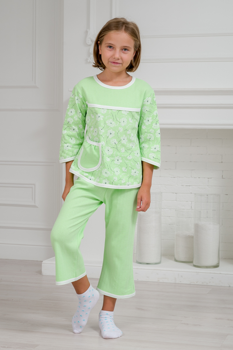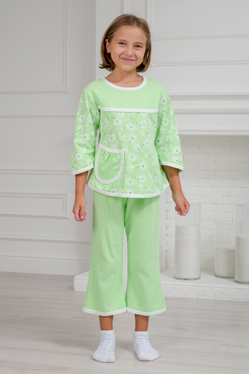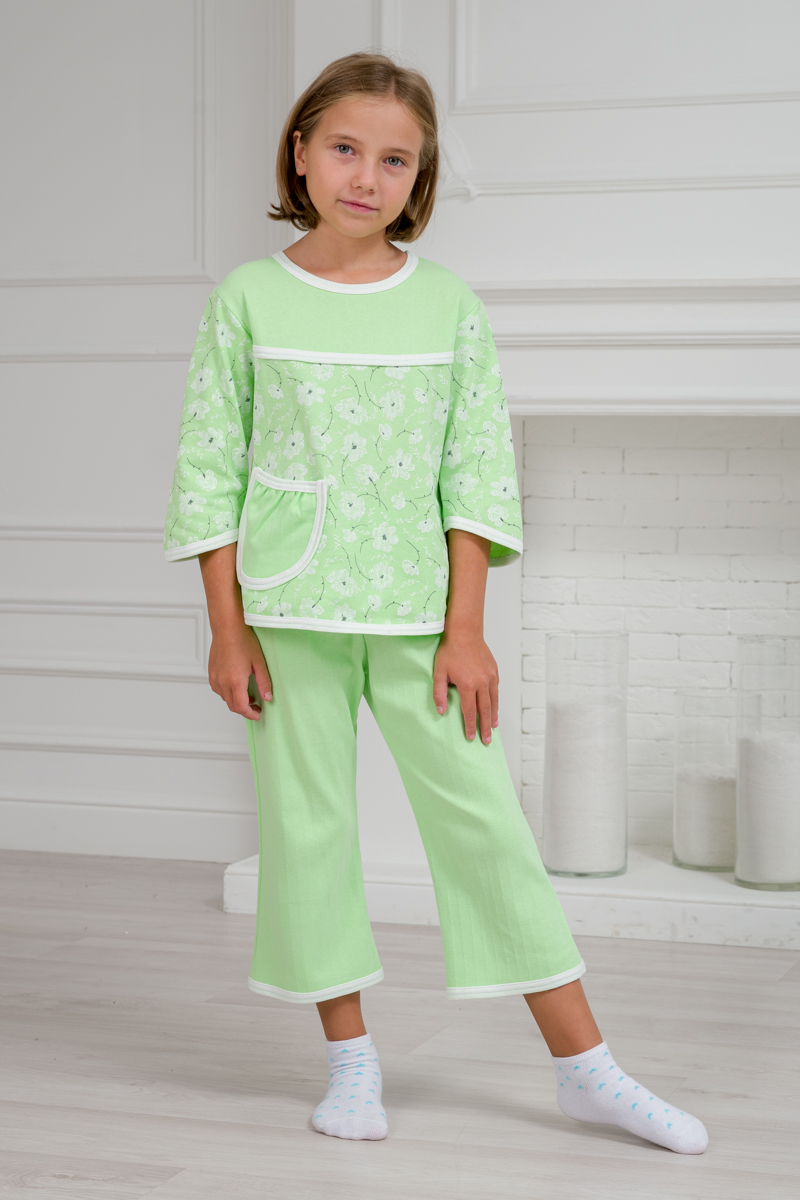 Пижама детская из футера Катя зеленый