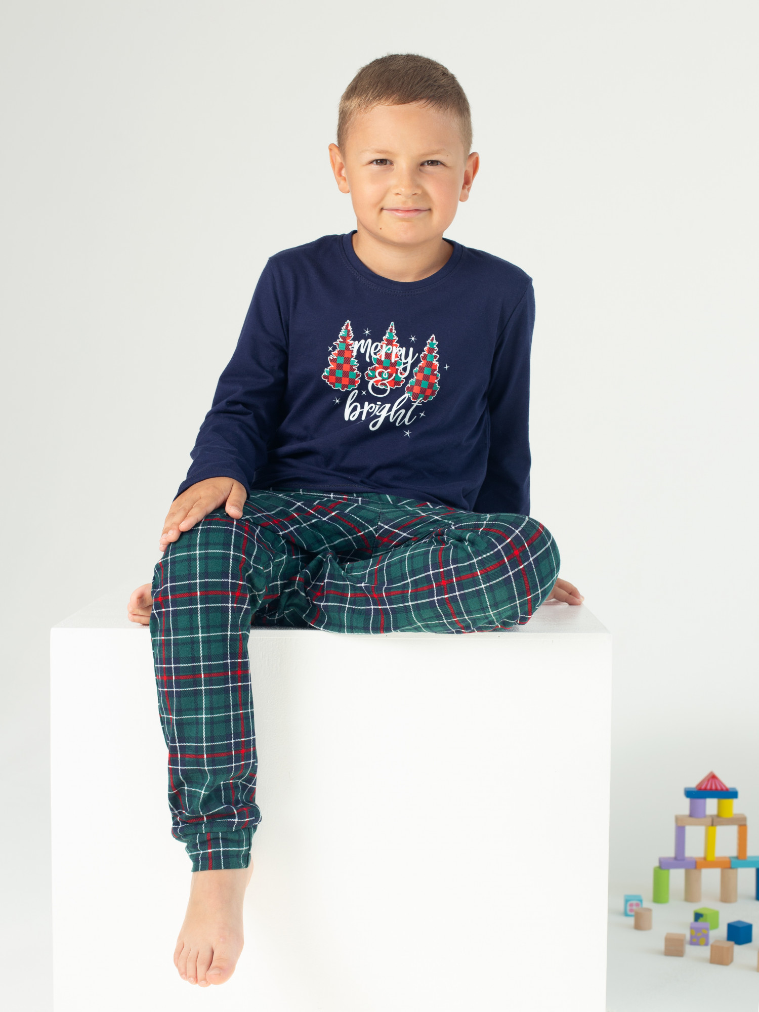 Пижама детская кулирка с брюками "ЕЛКИ" ЗЕЛЕНЫЙ