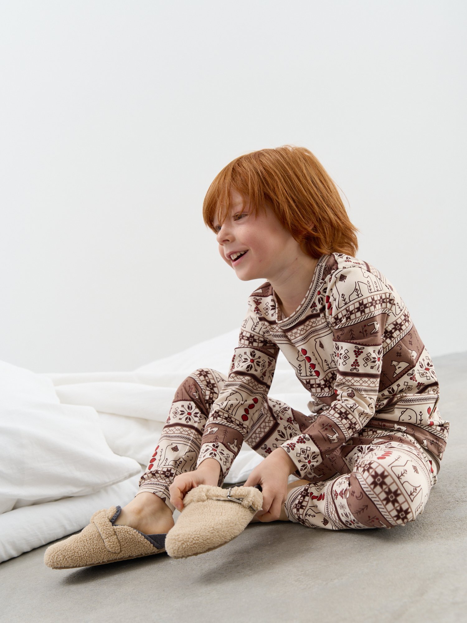 Плоские швы на рукавах и по низу изделия не натирают и не мешают крепкому сну. Легинсы с цельнокроеным поясом на мягкой резинке идеально садятся по фигуре, а манжеты из основной ткани не дают штанинам задираться – тепло и уютно всю ночь.