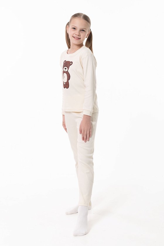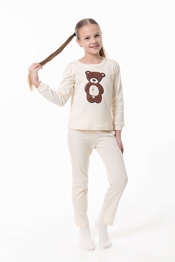 Детская пижама выполнена из мягкого и приятного к телу интерлока, который хорошо сохраняет тепло и подходит для повседневной носки. Лонгслив с манжетами по низу рукавов, обеспечивающими комфортную посадку. Спереди изделие украшено милым принтом в виде медвежонка. Брюки выполнены на удобной резинке, без карманов, не стесняют движений ребёнка во время сна и отдыха. Пижама отлично подойдёт для уютных вечеров и комфортного сна.