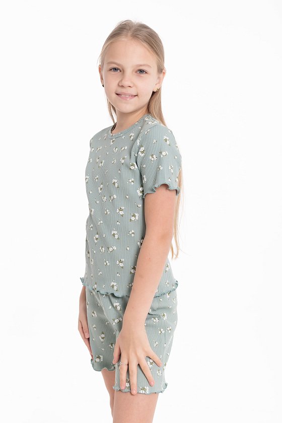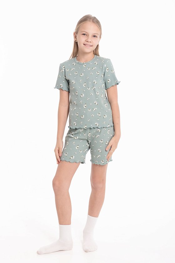 Пижама из мягкого кашкорсе — комфортный вариант для сна и домашнего отдыха. Пижама состоит из футболки и шорт с набивным рисунком. Низ рукавов, футболки и шорт обработан микрооверлоком, что придаёт изделию аккуратный вид и сохраняет эластичность ткани. Материал приятный к телу, хорошо тянется и не сковывает движений.