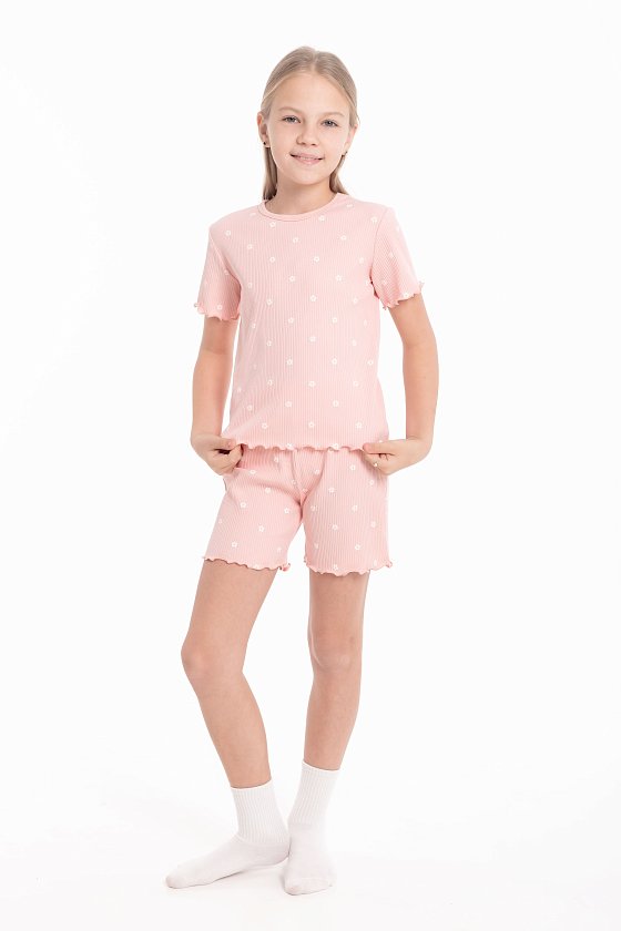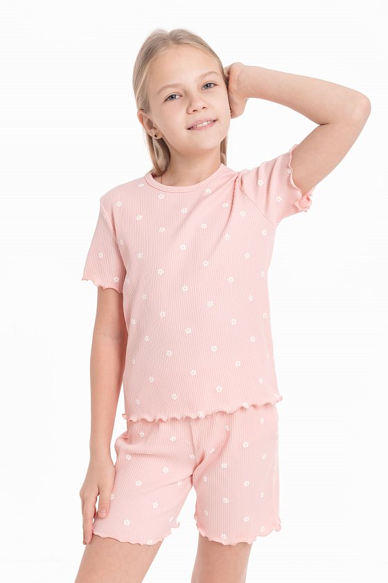Пижама из мягкого кашкорсе — комфортный вариант для сна и домашнего отдыха. Пижама состоит из футболки и шорт с набивным рисунком. Низ рукавов, футболки и шорт обработан микрооверлоком, что придаёт изделию аккуратный вид и сохраняет эластичность ткани. Материал приятный к телу, хорошо тянется и не сковывает движений.