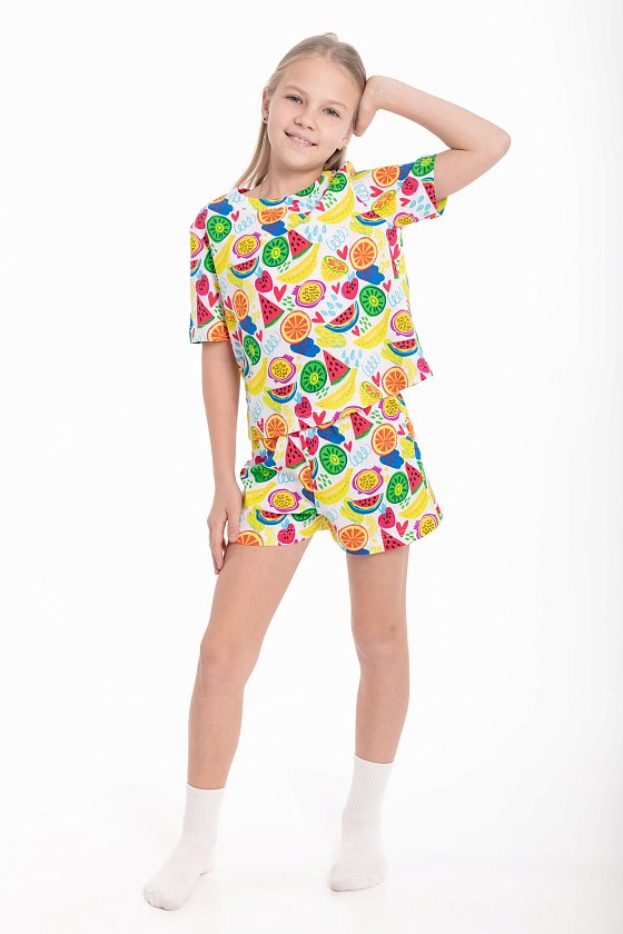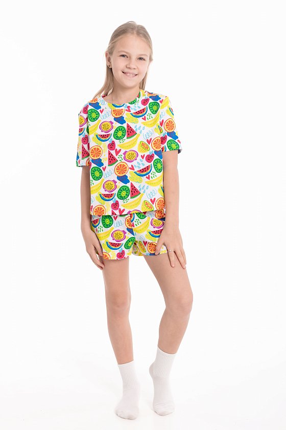 Пижама из мягкой кулирки — удобный вариант для сна и домашнего отдыха. Комплект состоит из футболки с коротким втачным рукавом и шорт с поясом на эластичной резинке. Приятная к телу ткань обеспечивает комфорт и свободу движений во время сна.