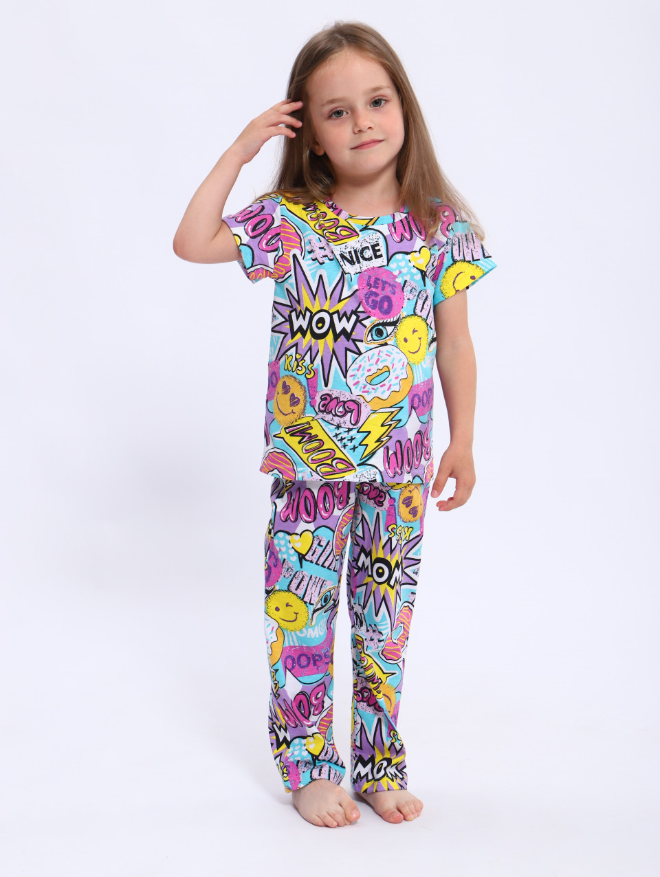 Пижама изготовлена из хлопковой кулирки - гладкой и легкой натуральной ткани, которая приятна на ощупь и обеспечивает хорошую вентиляцию. Это 100% хлопок, что делает эту пижаму безопасной и гипоаллергенной для кожи вашей девочки. Эта пижама не только идеально подходит для сна, но и может быть использована как нарядный домашний костюм для девочки. Она подчеркнет ее стиль и индивидуальность, добавляя уют и комфорт в домашнюю обстановку.