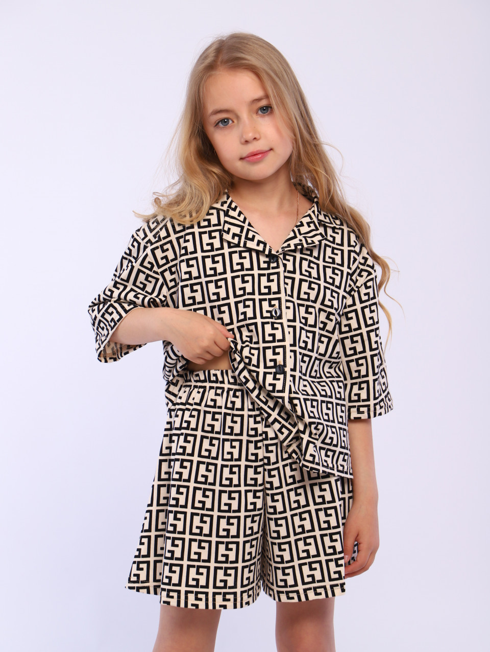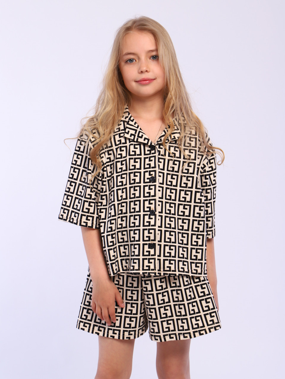 Красивая модель с шортами и рубашкой на пуговицах, с коротким рукавом и милым принтом, покорят сердца маленьких модниц. Эстетичные пижамные двойки свободного кроя изготовлены из приятной к телу ткани. Классическая модель в современном исполнении идеальна для маленьких детей и подростков. Подойдут модные хлопковые наборы для создания нарядного образа, для весёлой пижамной вечеринки девочек - подростков.