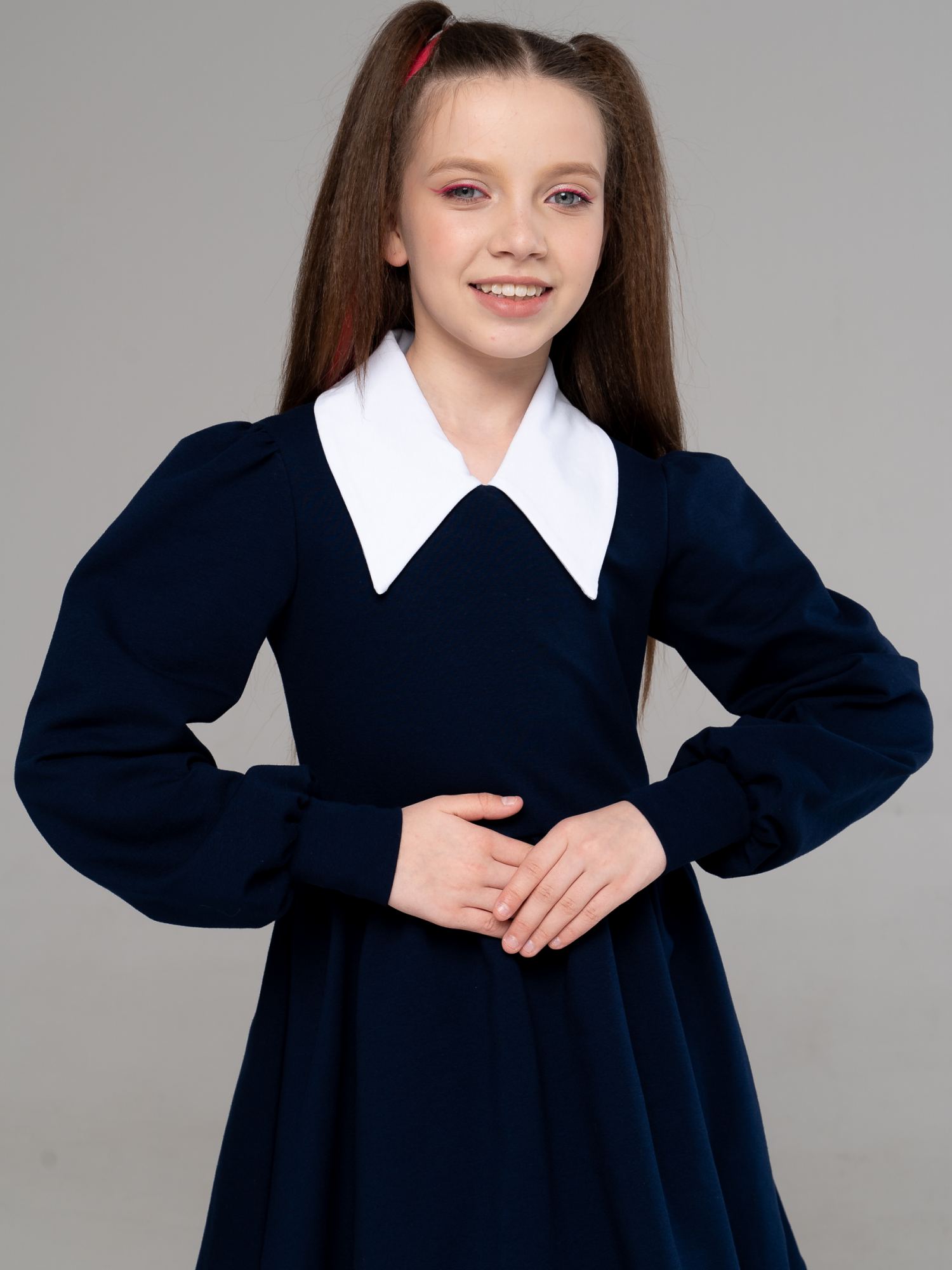 Модное платье 3 в 1 из школьной коллекции looklie для девочки с фигурным белым воротником. Модель состоит из двух платьев. Верхнее платье выполнено из премиального футера из футера темно-синего цвета для девочки, который приятен на ощупь и хорошо держит форму.Легкое и воздушное платье полуприлегающего силуэта , отрезное по линии талии, подчеркивает фигуру девочки . Длинные рукава со сборками по окату и низу и высокими манжетами придают дополнительный объем и делают его идеальным выбором для прохладных дней.