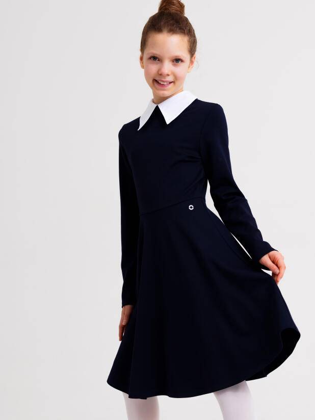 Классическое темно-синее школьное платье из трикотажа для девочки подростка от PlayToday — элегантная модель с отстёгивающимся воротником, созданная для учебных будней и школьных мероприятий. Свободный крой и мягкий материал обеспечивают комфорт и аккуратный внешний вид каждый день.