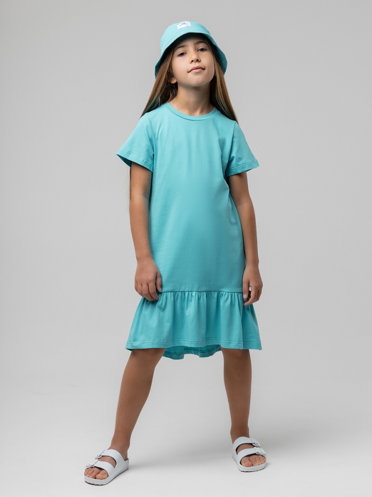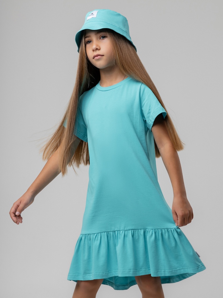 Материал кулирная гладь Состав 92% хлопок 8% лайкра Платье для девочек дошкольного возраста.Платье трапециевидного силуэта с втачным коротким рукавом. Горловина платья округлой формы. Нижняя часть отрезная со сборкой. Уровень линии низа полочки короче уровня линии низа спинки. Состав: кулирная гладь 92% хлопок 8% лайкра