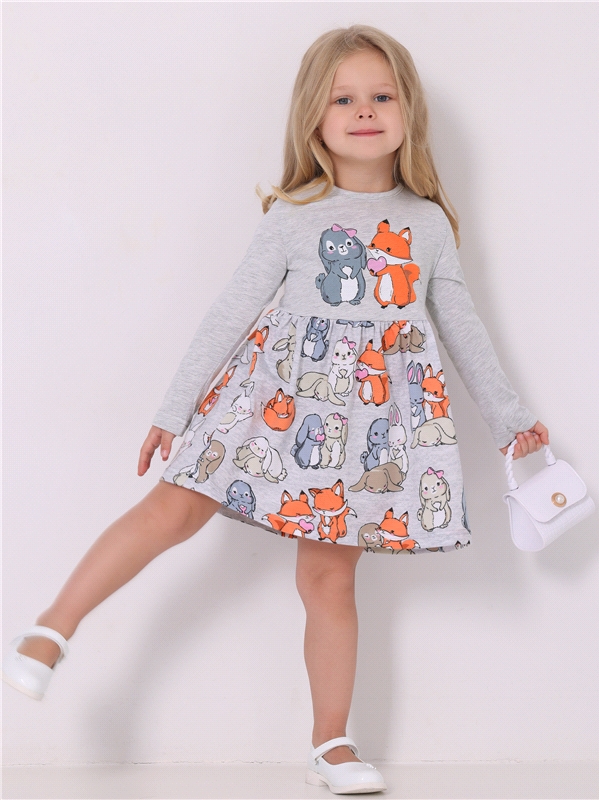 кулир / хлопок 70% + ПЭ 30% - / светло-серый+кролики и лисички на сером / Зайка и лисичка
