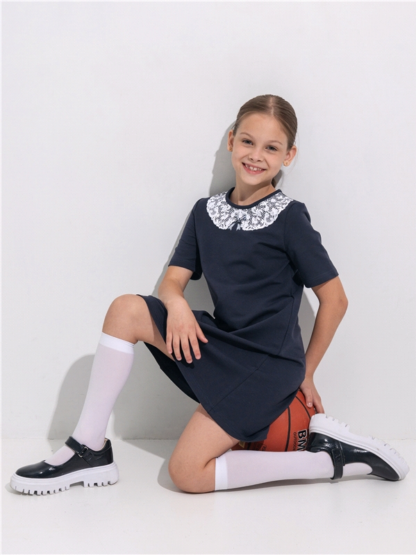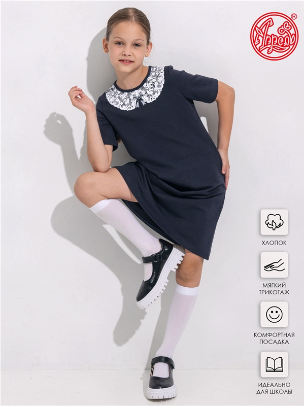 футер / хлопок 95% + лайкра 5% темно-синий82 / - / Ажурный воротник на темном