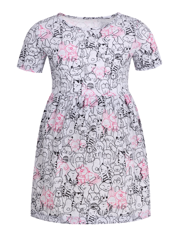 кулир / хлопок 100% - / зверушки на светло-сером / -