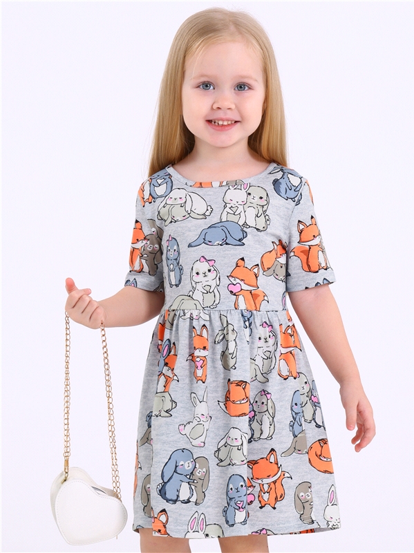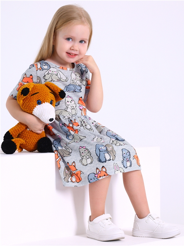кулир / хлопок 100% - / кролики и лисички на сером / -