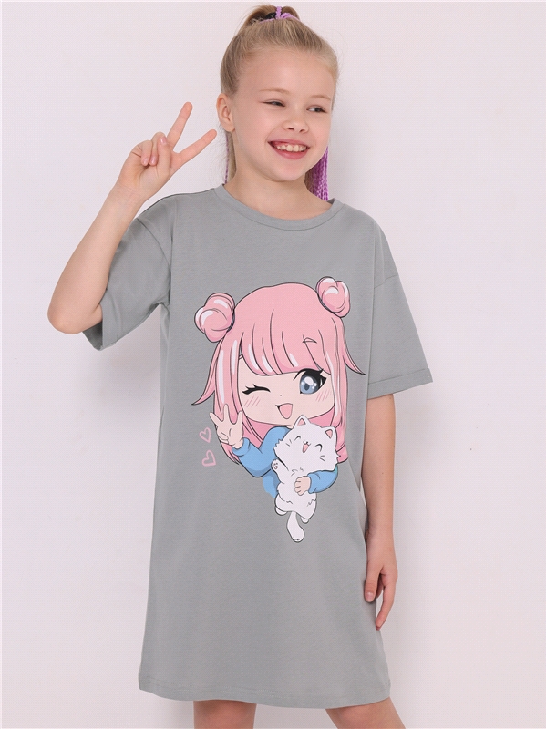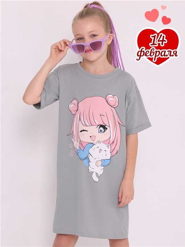 кулир / хлопок 100% серый261 / - / Аниме с котенком