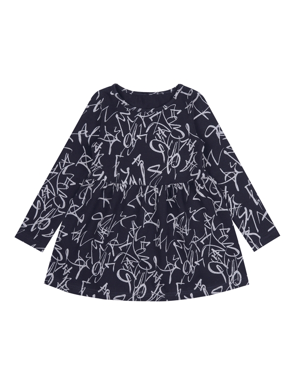 кулир с лайкрой / хлопок 92% + лайкра 8% - / серебряные граффити на темно-синем / -