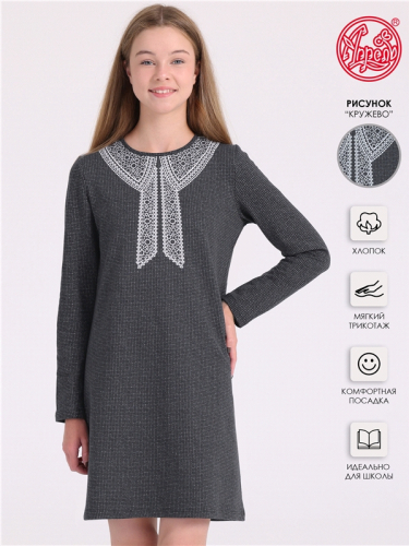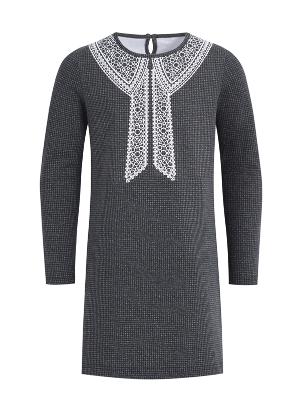 футер / хлопок 95% + лайкра 5% - / гусиная лапка мелкая серый / Воротник с галстуком на темном