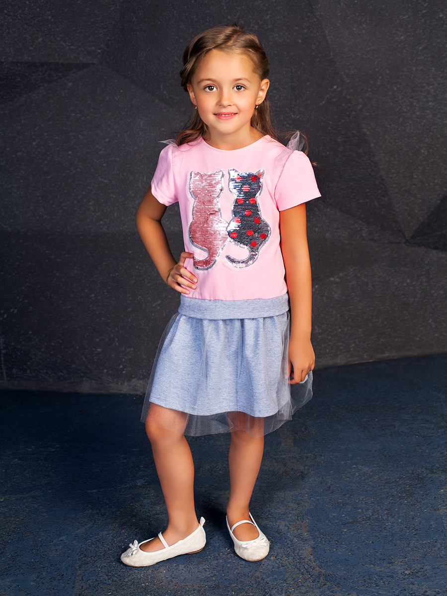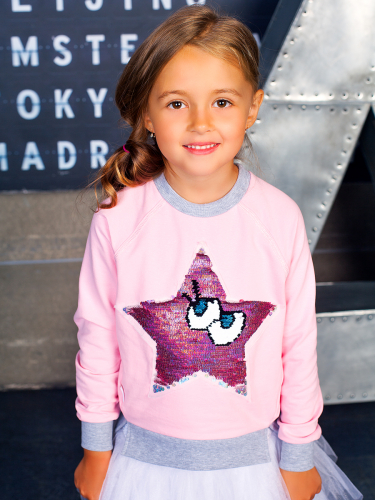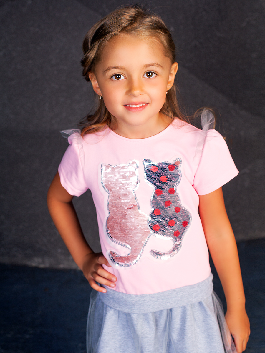Изделие изготовлено из трикотажного полотна.Украшено аппликацией с двойными пайетками.Рисунок меняется