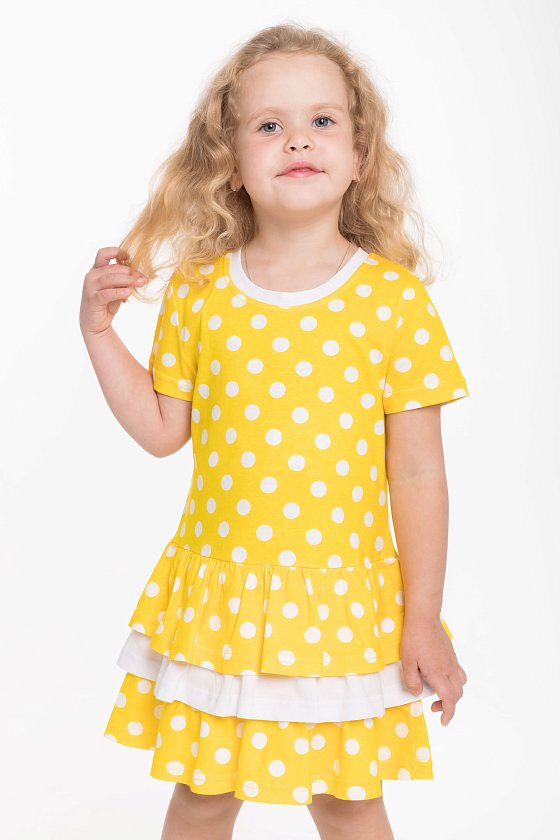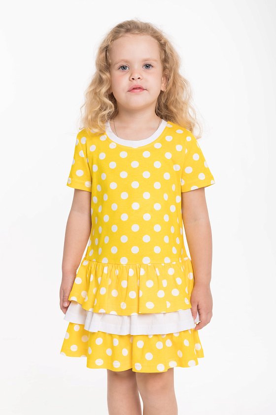 Платье выполнено из кулирки, 100% хлопок. С коротким рукавом и тремя оборками на юбке.