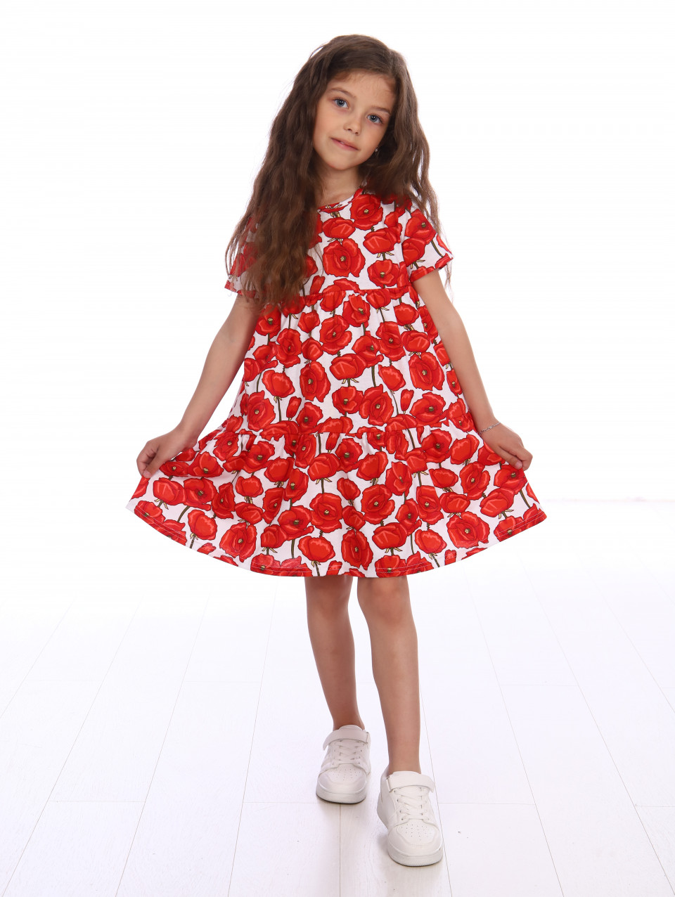 Летнее платье для девочки с коротким втачным рукавом и отрезной кокеткой на груди и подоле. Горловина детского платья округлая. Праздничное платье для девочки простое и стильное. Это и платье на день рождения, детское платье на 8 марта, платье в детский сад или на прогулку.
