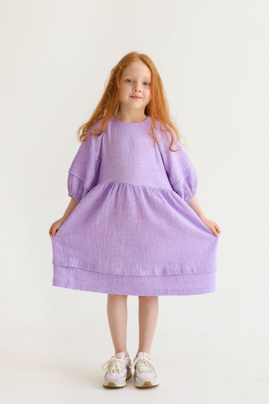 Детское веселье начинается там, где комфортно и безопасно. Платье из муслина – это функциональная модель на лето для ваших юных леди. Муслин отличается мягкостью и воздухопроницаемостью, а свободный крой позволяет быть самой активной этим летом.