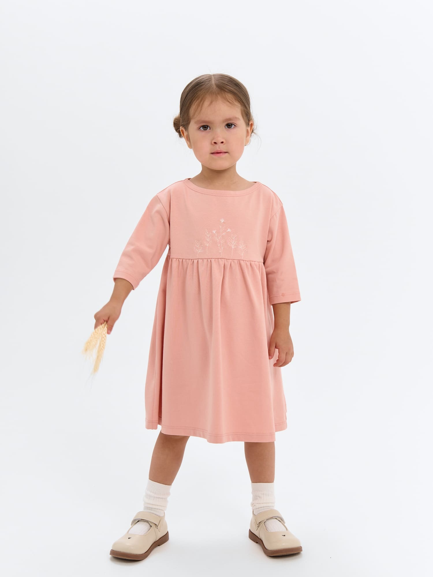 Платье из мягкого трикотажного полотна с рукавом 3/4 – удобная и нарядная модель для малышек.
