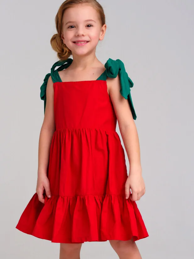 Сарафан из поплина средней длины с завязками на плечах. Высокое содержание хлопка.