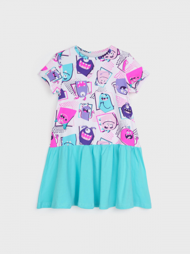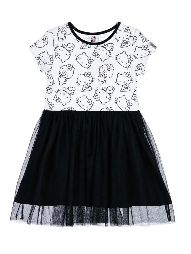 Платье из качественного и приятного на ощупь трикотажа джерси. Высокое содержание хлопка 95%. Благодаря наличию эластана в составе ткани изделие проще в уходе и держит форму. Юбка из сетки.