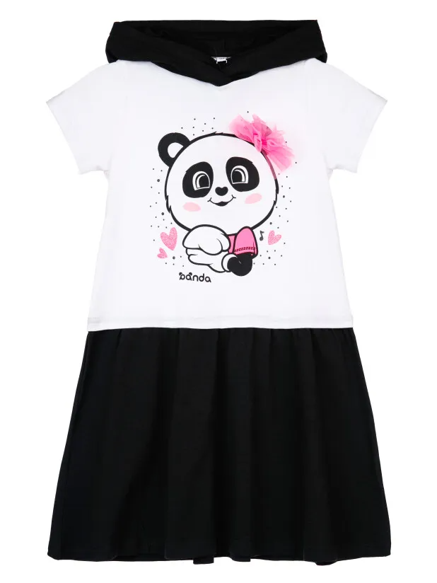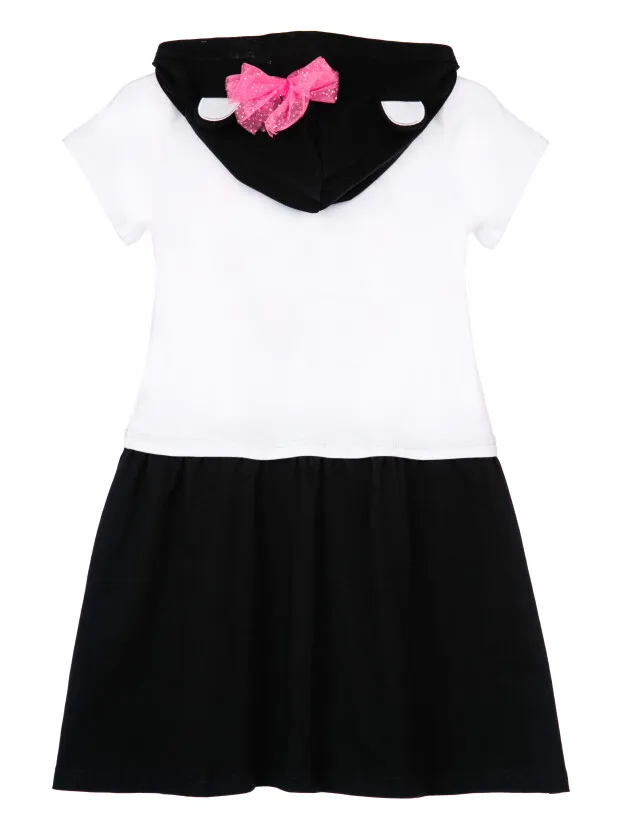 Платье с капюшоном из качественного и приятного на ощупь трикотажа джерси. Высокое содержание хлопка 95%. Благодаря наличию эластана в составе ткани изделие проще в уходе и держит форму..
