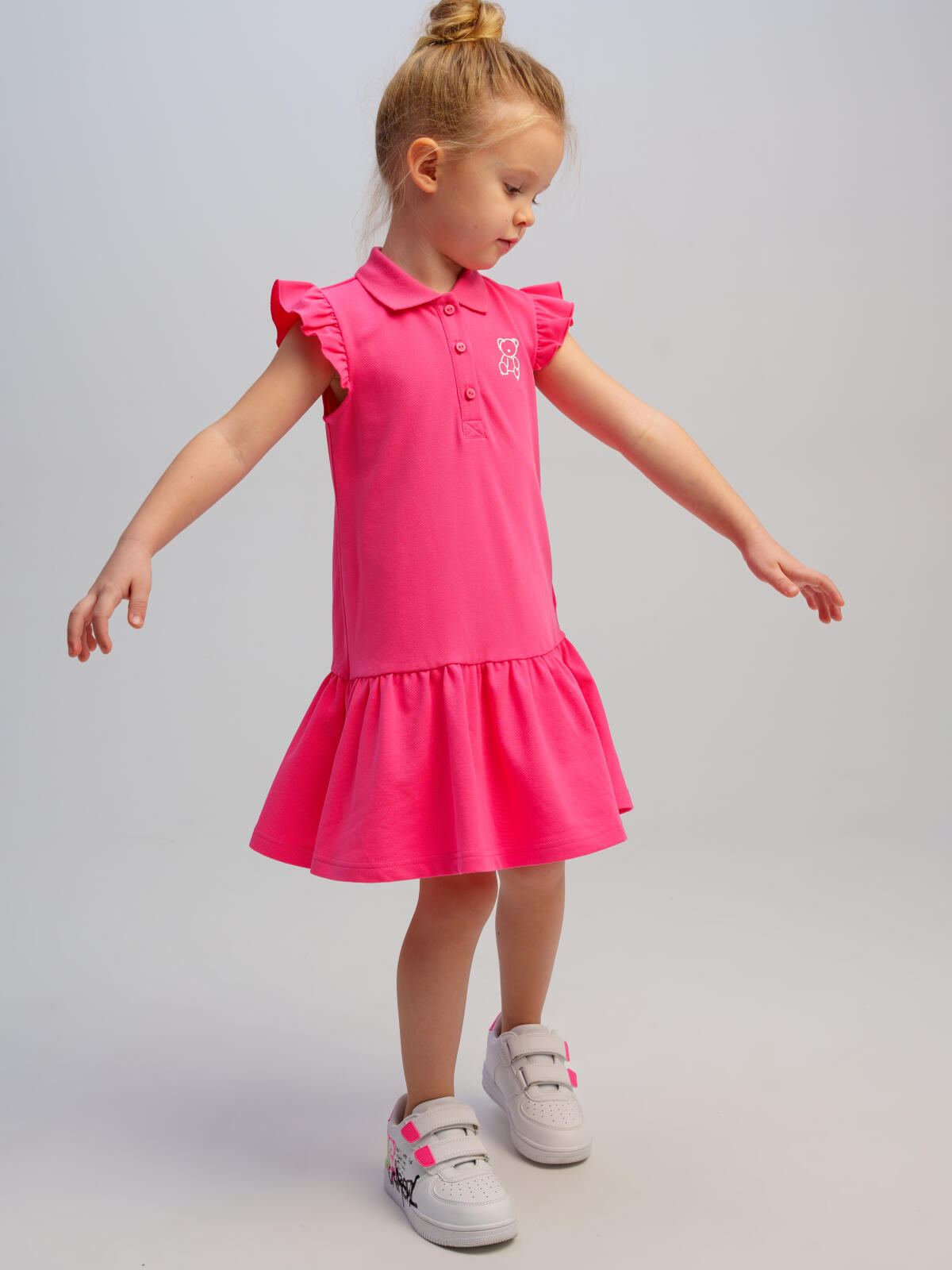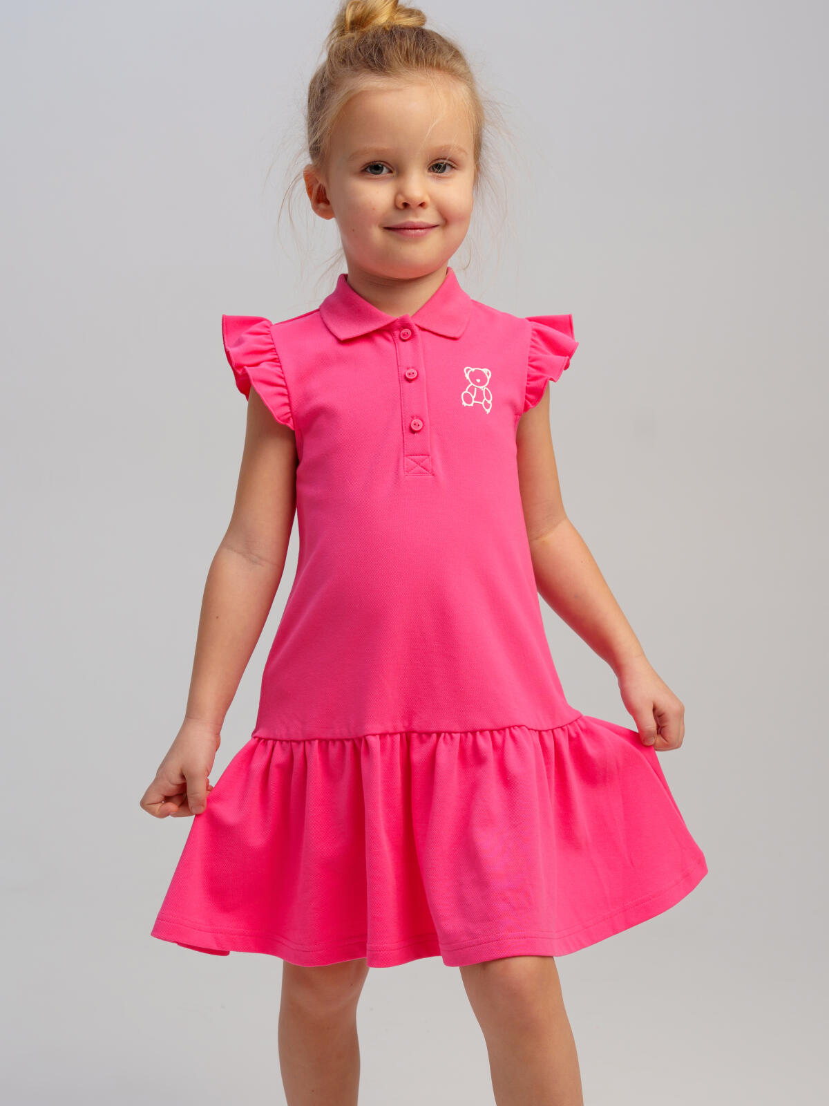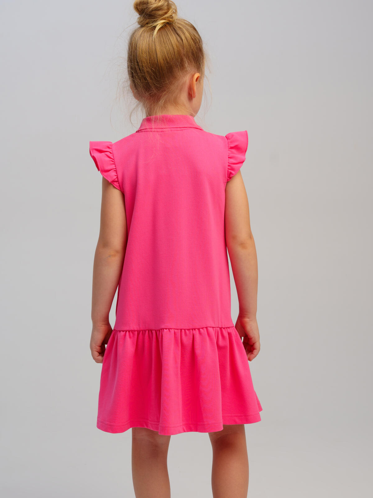 Платье детское для девочки. Платье-поло из фактурного трикотажа пике. Высокое содержание хлопка. Застежка на кнопках. Модель выполнена из качественного и приятного на ощупь трикотажа.