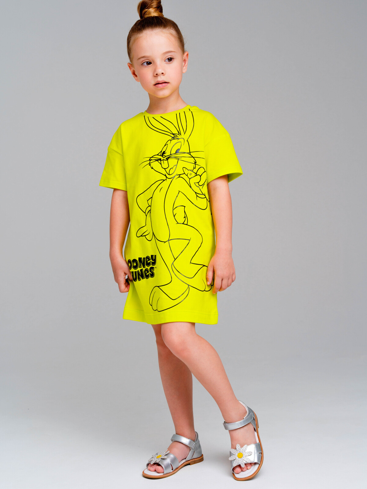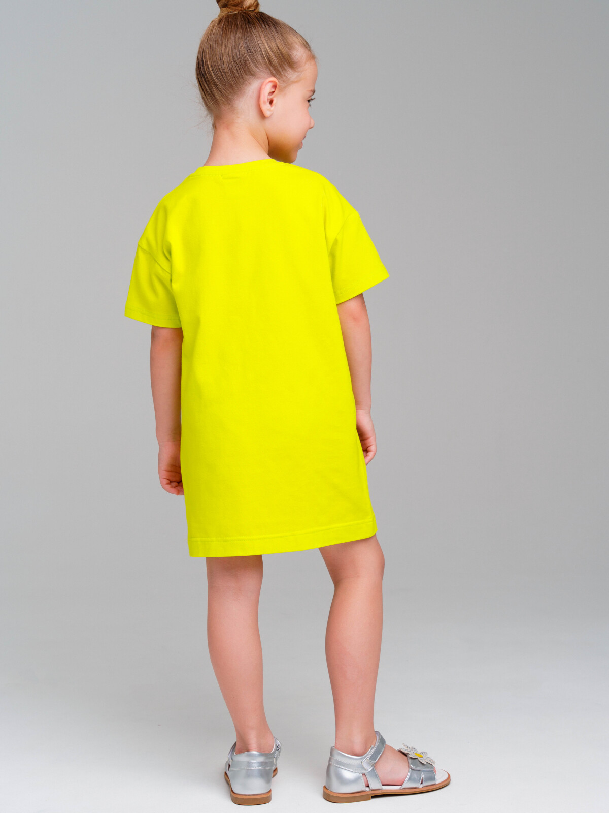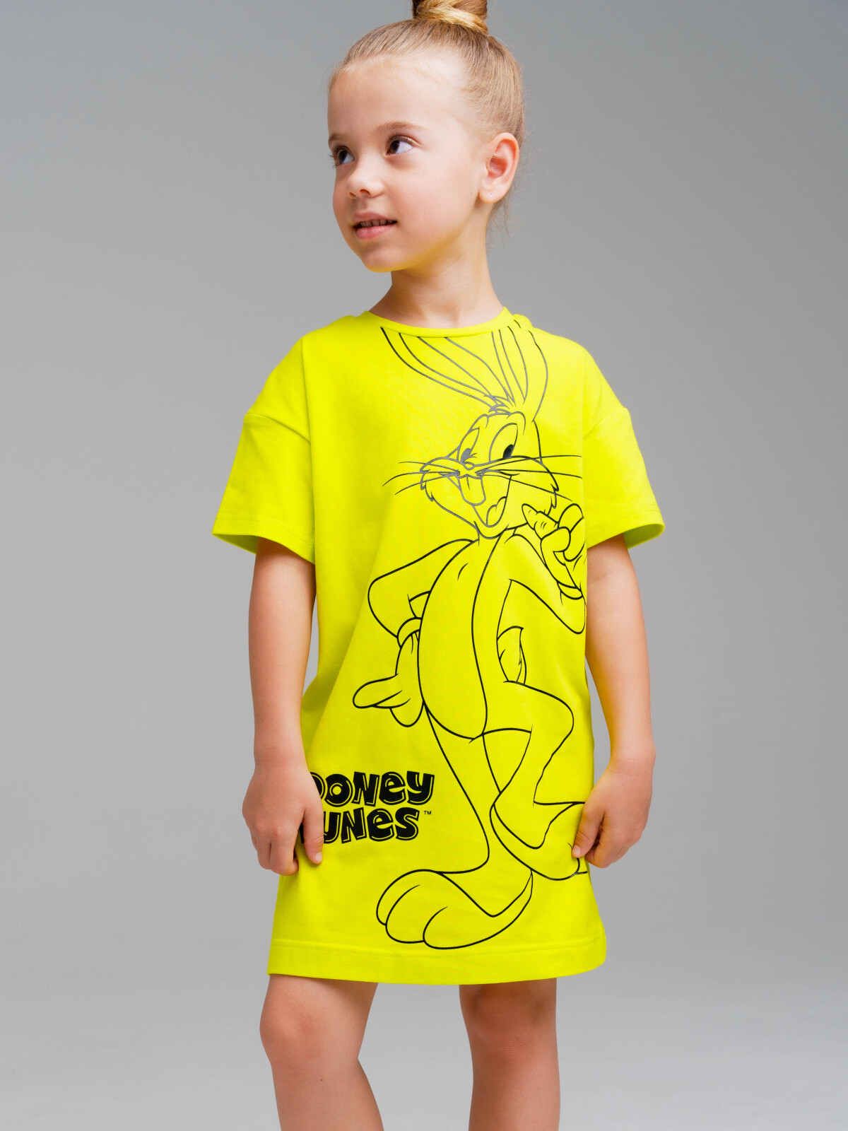 Платье-футболка из качественного и приятного на ощупь трикотажа джерси. Высокое содержание хлопка 95%. Благодаря наличию эластана в составе ткани изделие проще в уходе и держит форму. Oversize силуэт.