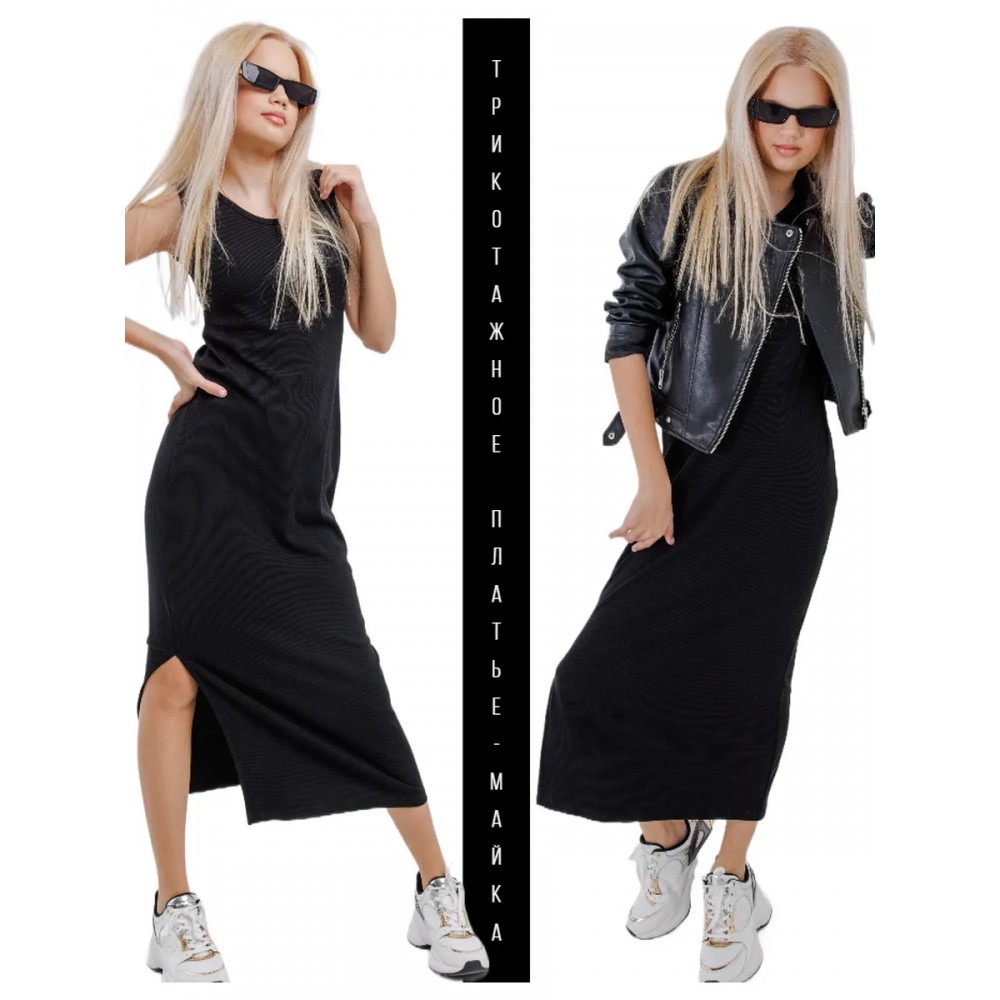 Платья-майка лапша с разрезами черное Bloomy-line