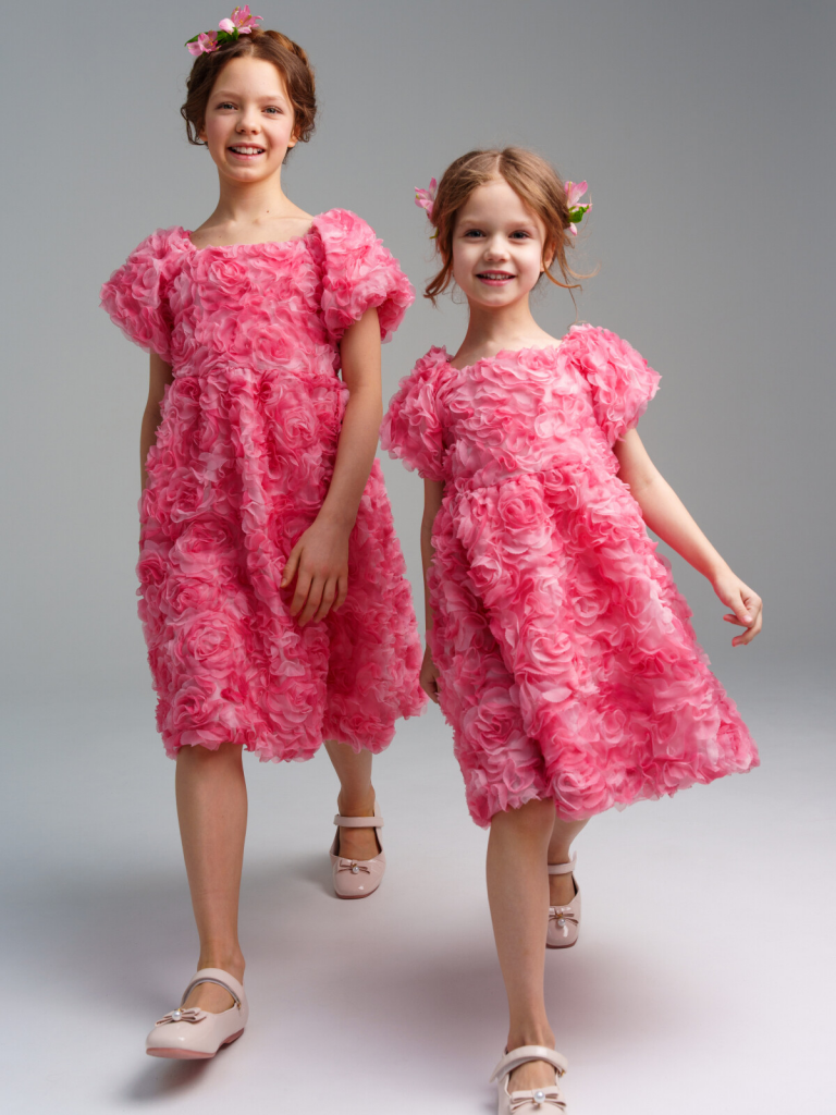 Платье нарядное из поплина. Легкое, воздушное и комфортное. Декорировано цветами из сетки. Застежка на потайную молнию.