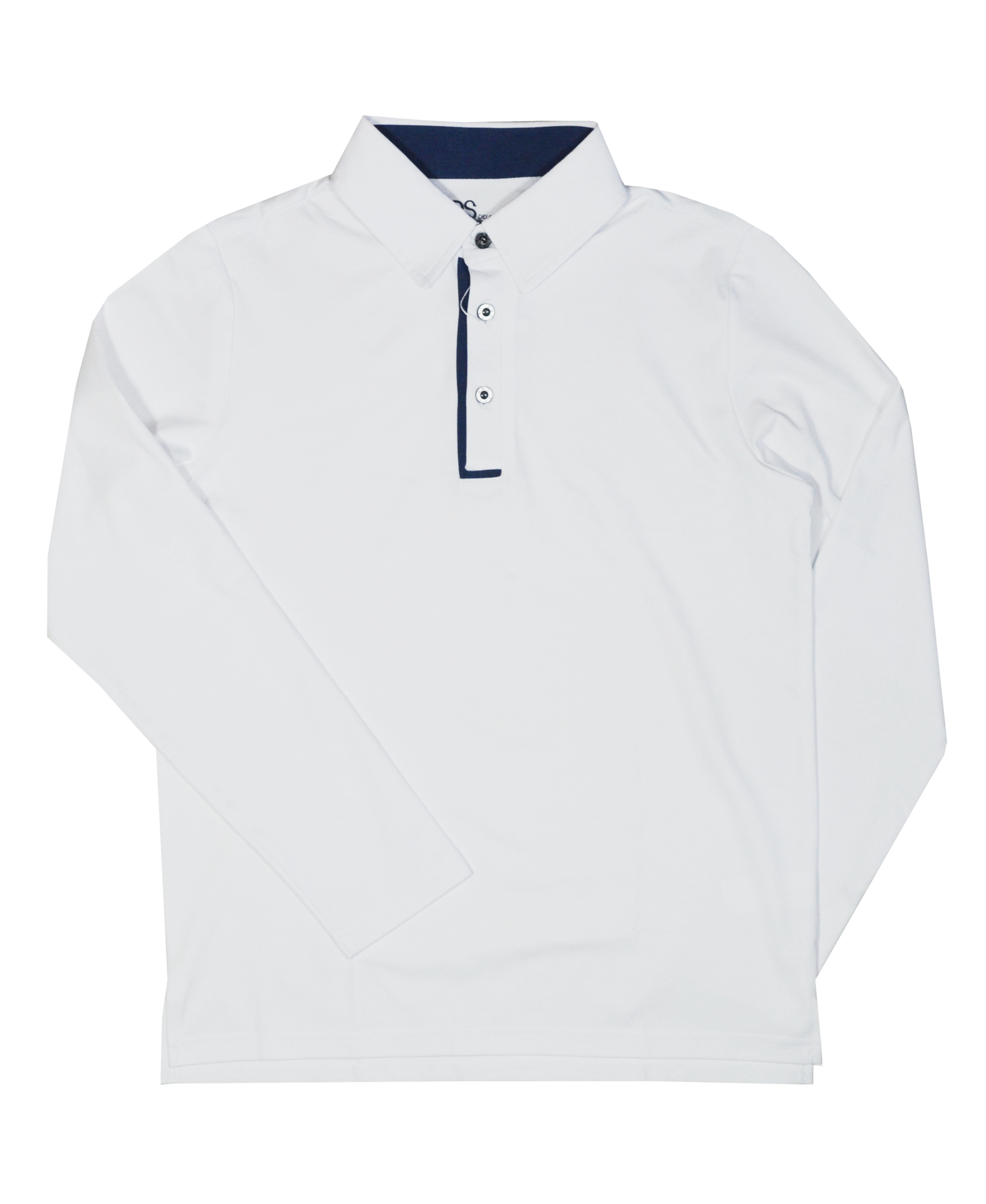 Классическое поло с длинным рукавом для мальчика. Застежка на пуговицы. Ткань нового поколения.   Воротник из основной ткани. Подворотник и вставки черного цвета.