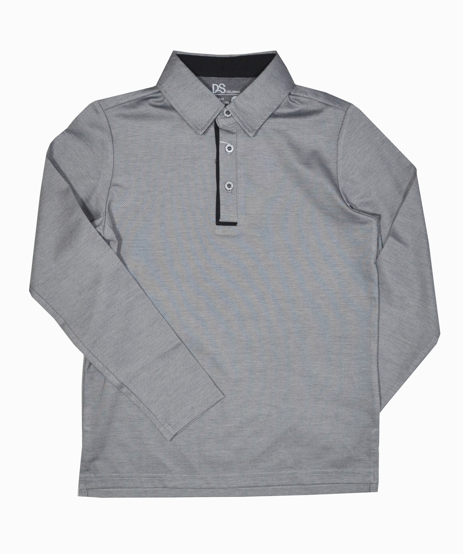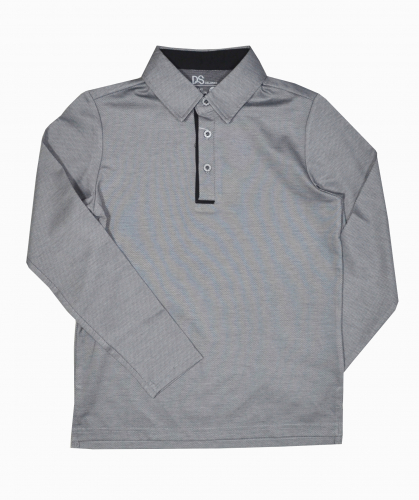 Классическое поло с длинным рукавом для мальчика. Застежка на пуговицы. Ткань нового поколения.   Воротник из основной ткани. Подворотник и вставки черного цвета.  Цвет красивый.