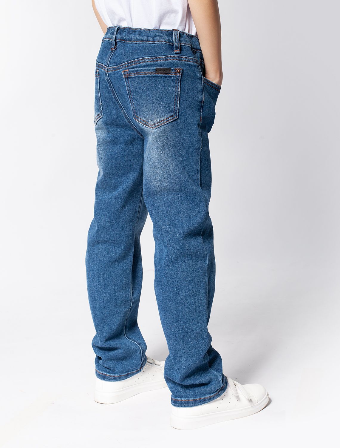 Классические прямые синие джинсы с легким эффектом делаве выполнены из мягкого плотного хлопка. Чтобы модель садилась по фигуре максимально комфортно, в состав денима добавили эластан. Удобства добавляют регулируемые внутренние резинки для комфортной фиксации изделия