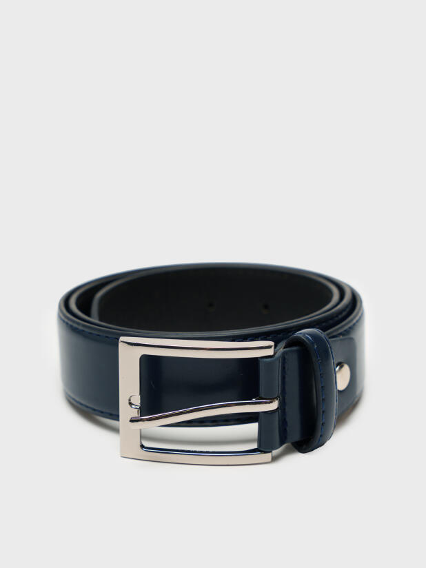 Ремень для мальчика подростка. Классический костюмный ремень подходит для школьных брюк. Ремень выполнен из темно-синей искусственной кожи. Цвет пряжки - никель. Ширина ремня 3,2 см. Представлен в двух длинах 85 и 95 см (для подбора ремня ориентируйтесь по таблице размеров). На ремне 5 отверстий, которые позволяют регулировать обхват ремня +/- 5 см от заданного обхвата талии. Легко укорачивается и подгоняется под размер при помощи винта.