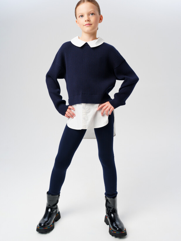 Модные синие трикотажные рейтузы в школу для девочки от PlayToday — комфорт, тепло и универсальность каждый день. Отличное решение для холодного сезона!