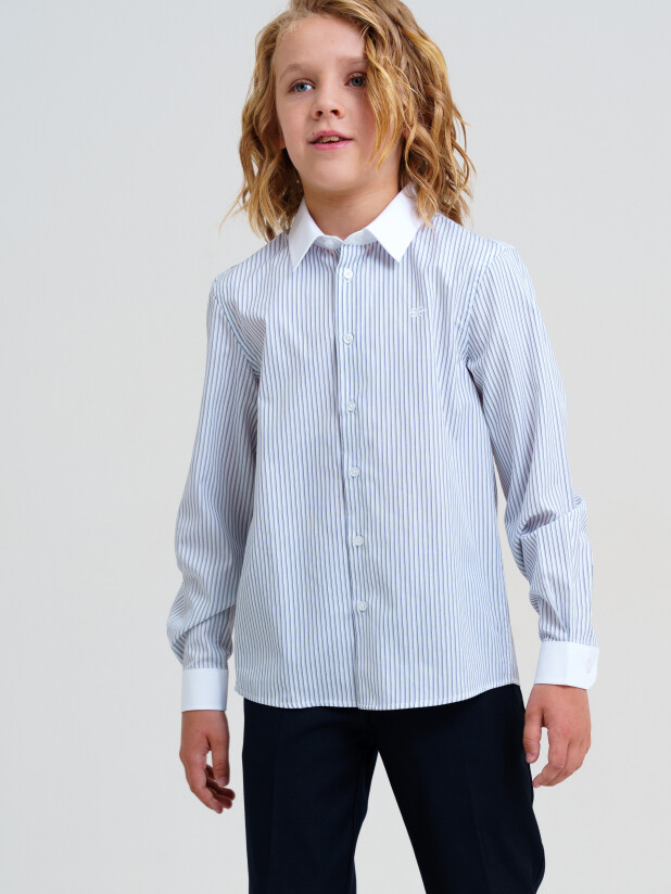 Эта строгая, лаконичная, элегантная рубашка для мальчика с длинным рукавом — настоящая классика школьного гардероба. Она легко впишется в повседневный образ и придаст нужную строгость для торжественных мероприятий: 1 сентября, классных собраний и выпускных. Универсальный дизайн, сдержанный стиль и продуманный крой делают эту рубашку незаменимой в гардеробе школьника.