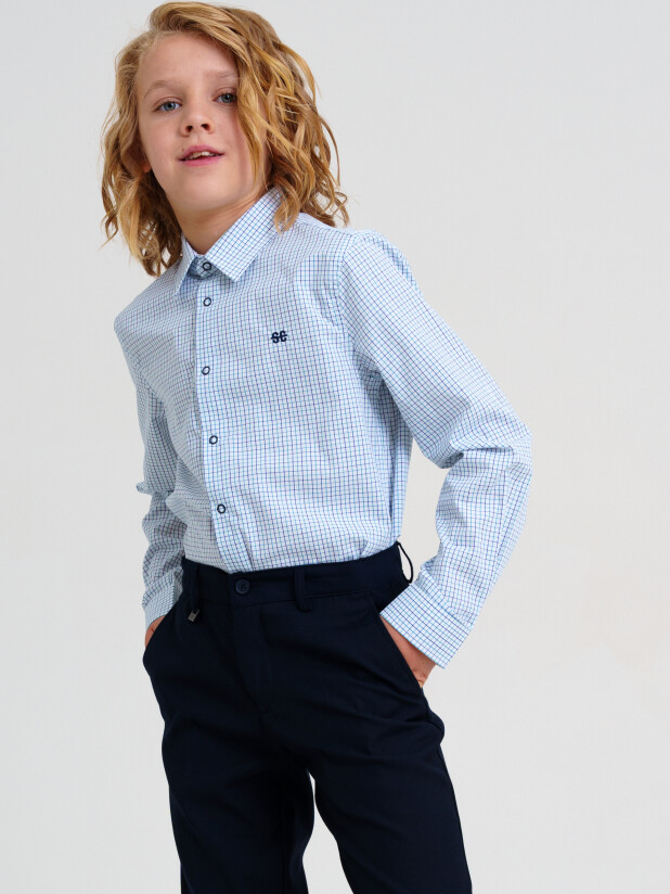 Клетчатая школьная рубашка с длинным рукавом от бренда PlayToday — стильная классика для повседневных и торжественных школьных образов.