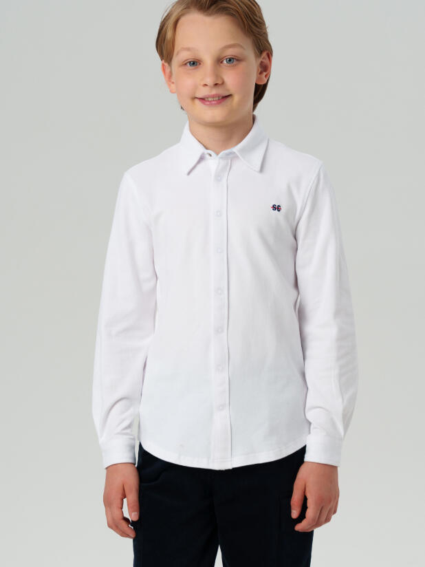 Эта рубашка для мальчика с длинным рукавом создана специально для школы: строгая и сдержанная, но в то же время — мягкая, гибкая и невероятно комфортная. Ткань — хлопковый трикотаж пике с эластаном — не раздражает кожу, хорошо пропускает воздух и сохраняет аккуратный внешний вид даже после интенсивного дня в классе или на переменах.