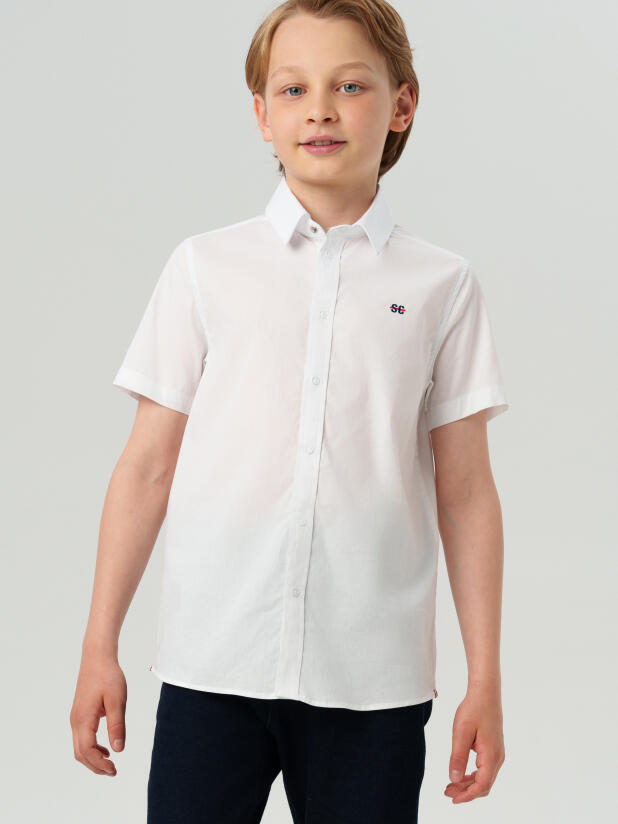 Белая рубашка с коротким рукавом для мальчика от бренда PlayToday — базовая вещь, без которой не обойтись в школьном гардеробе подростка.
