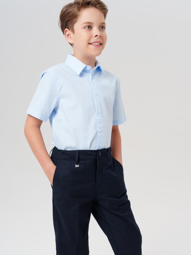 Голубая рубашка с коротким рукавом для мальчика-подростка от бренда PlayToday — стильный и удобный выбор для школы и торжественных мероприятий. Эта стильная хлопковая рубашка легко впишется в любой школьный гардероб и станет незаменимой на 1 сентября, выпускной, утренник или просто на каждый учебный день.