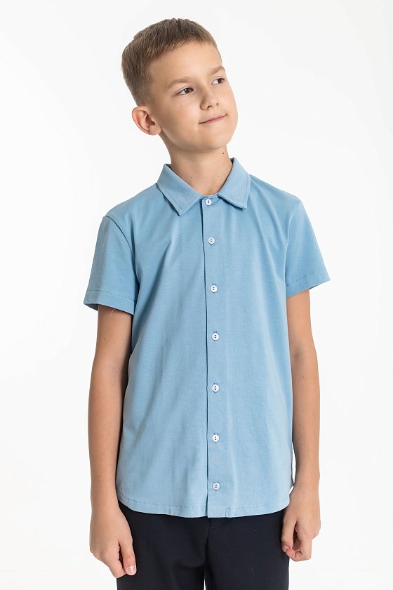 Серо-голубая рубашка с коротким рукавом из материала кулирка с лайкрой и застёжкой на пуговицы — отличный выбор для школьника. Обеспечивает свободу движений, комфорт и аккуратный внешний вид. Воротник придаёт изделию стильный вид.