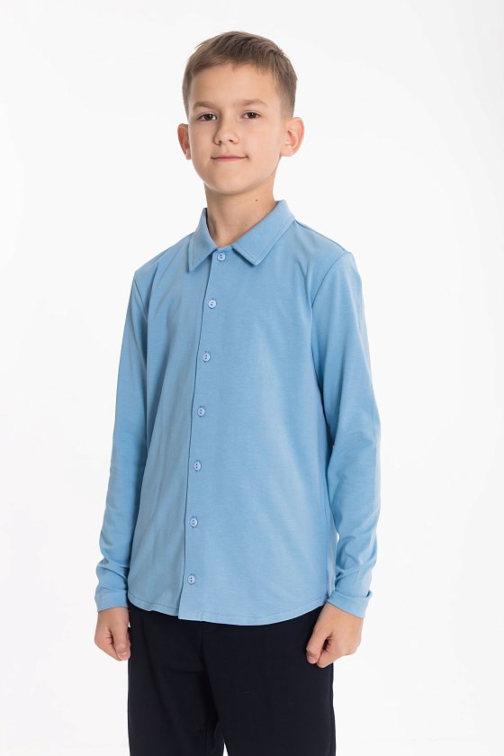 Рубашка с длинным рукавом из материала кулирка с лайкрой и застёжкой на пуговицы — отличный выбор для школьника. Обеспечивает свободу движений, комфорт и аккуратный внешний вид. Воротник придаёт изделию стильный вид.