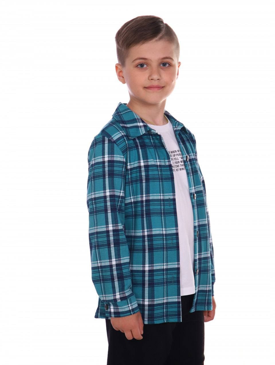 Рисунок в виде клетки придает рубашке яркость и необычность. Подойдет как для праздников, так и для повседневной носки.